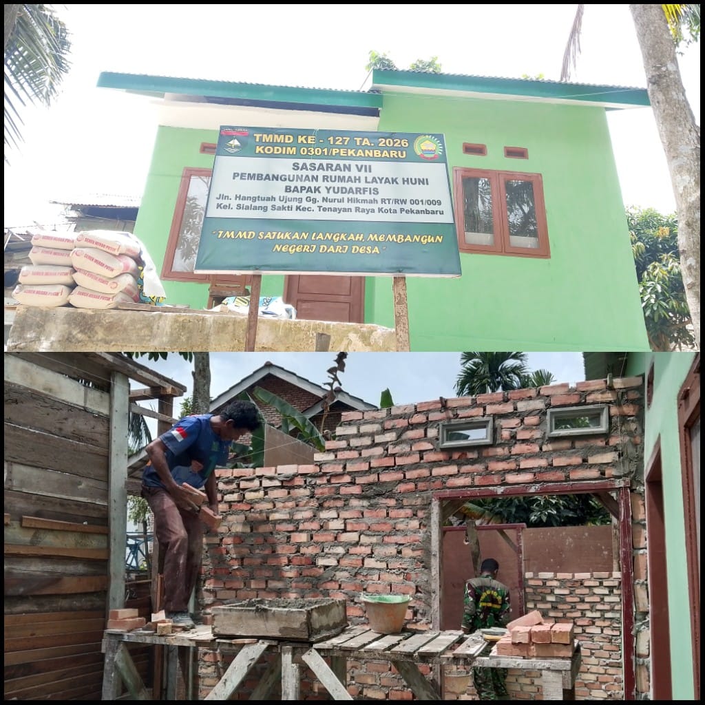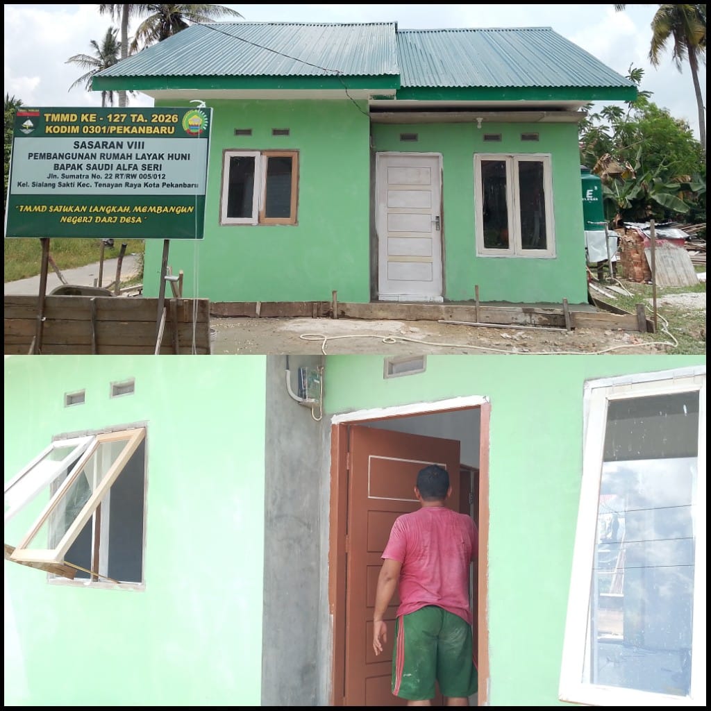 Progres 94 Persen, Satgas TMMD Kodim 0301/Pekanbaru Rampungkan RTLH Saudi Alfa.