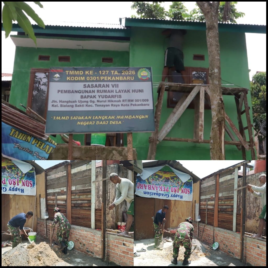 Progres 94 Persen, Satgas TMMD Kodim 0301/Pekanbaru Rampungkan RTLH Saudi Alfa.