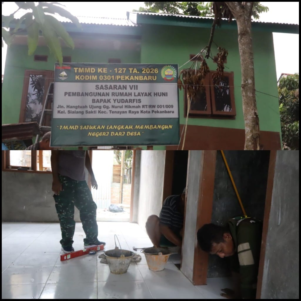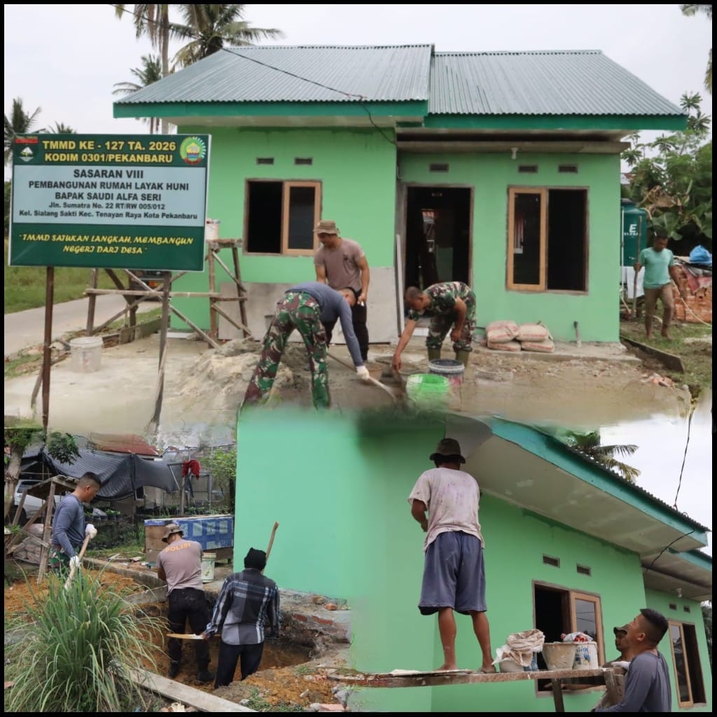 Satgas TMMD Ke-127 Kodim 0301/Pekanbaru Optimalkan Pengerjaan RTLH Saudi Alfa Seri di Tenayan.