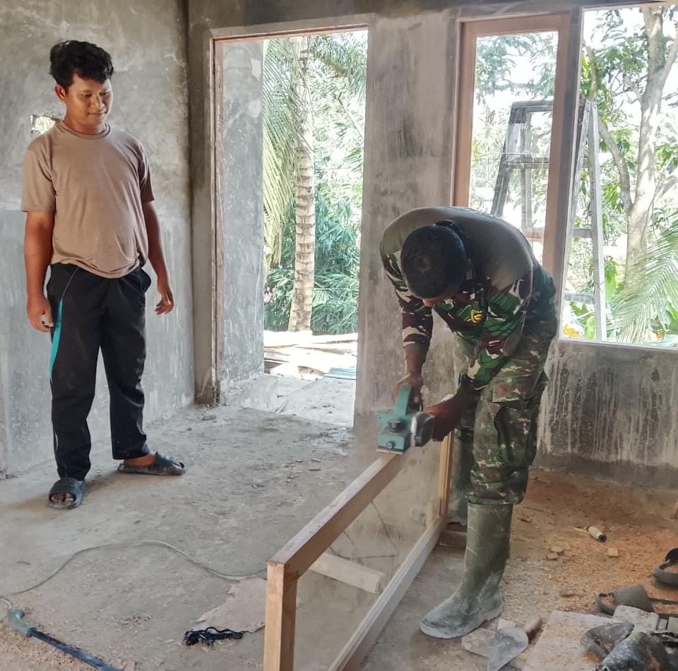 Balik Tetes Keringat, Plester Dinding Dalam Rumah Milik Sarianis Terus Dikerjakan Satgas.