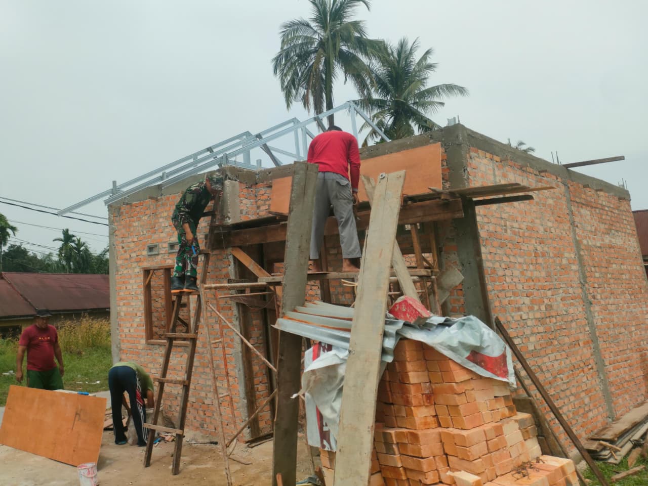 Pemasangan Mal Dak Teras RTLH Warga Tenayan Raya, Bukti Nyata Kepedulian Satgas.
