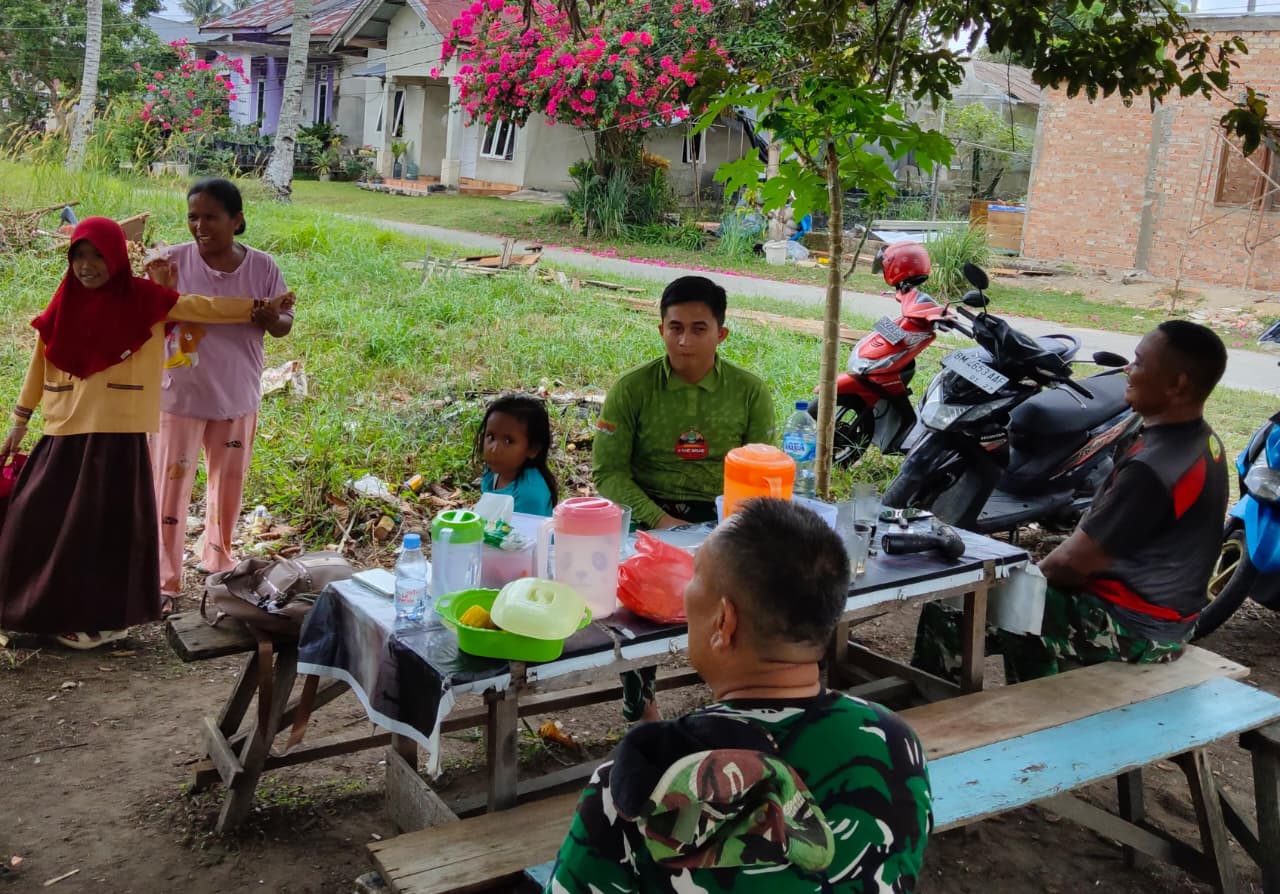 Keakraban Satgas TMMD ke-127 Kodim 0301/Pekanbaru dengan Sarianis di Tengah Terik.