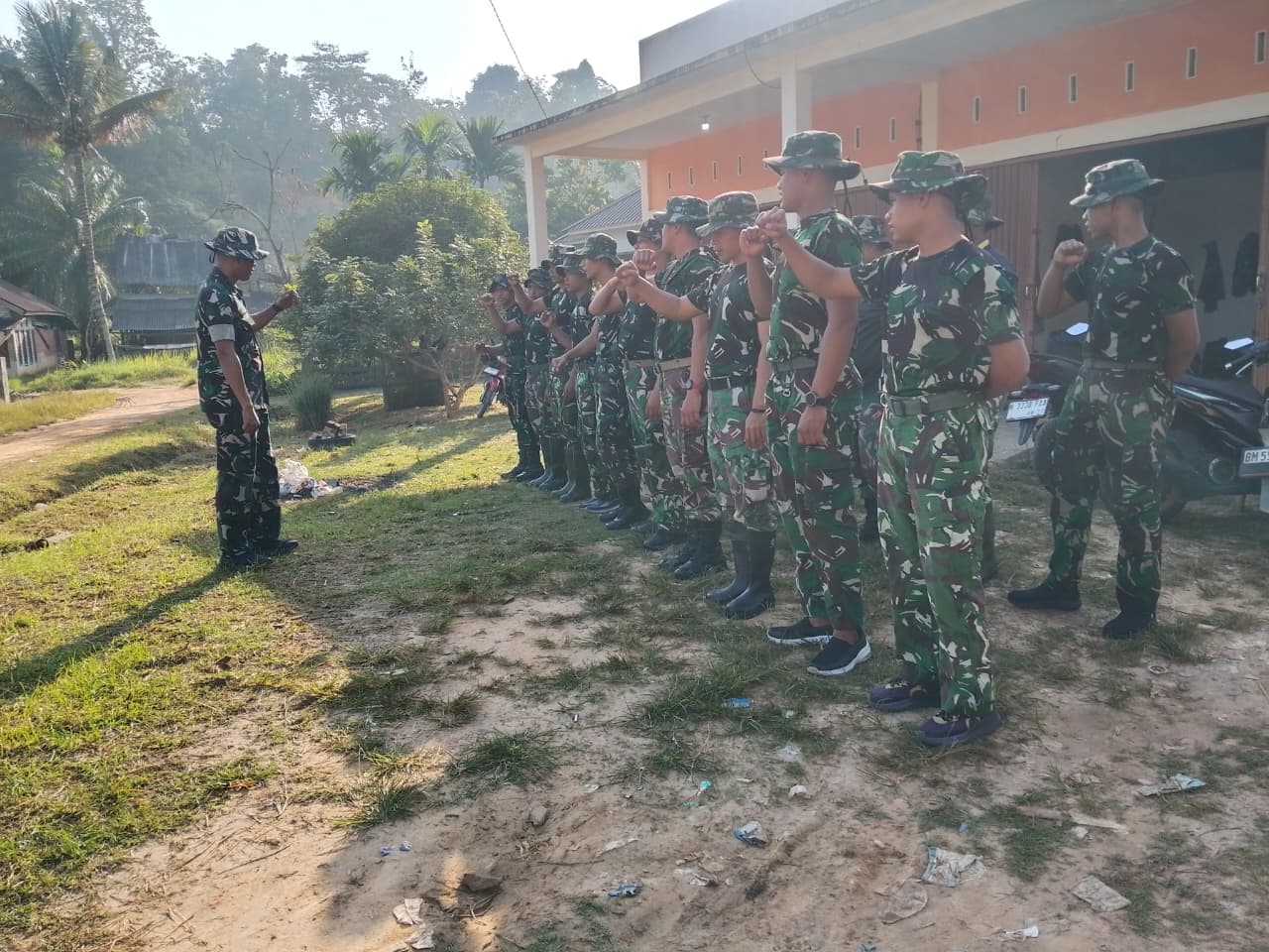 Personel Satgas TMMD ke-127 Kodim 0301/Pekanbaru Laksanakan Apel.