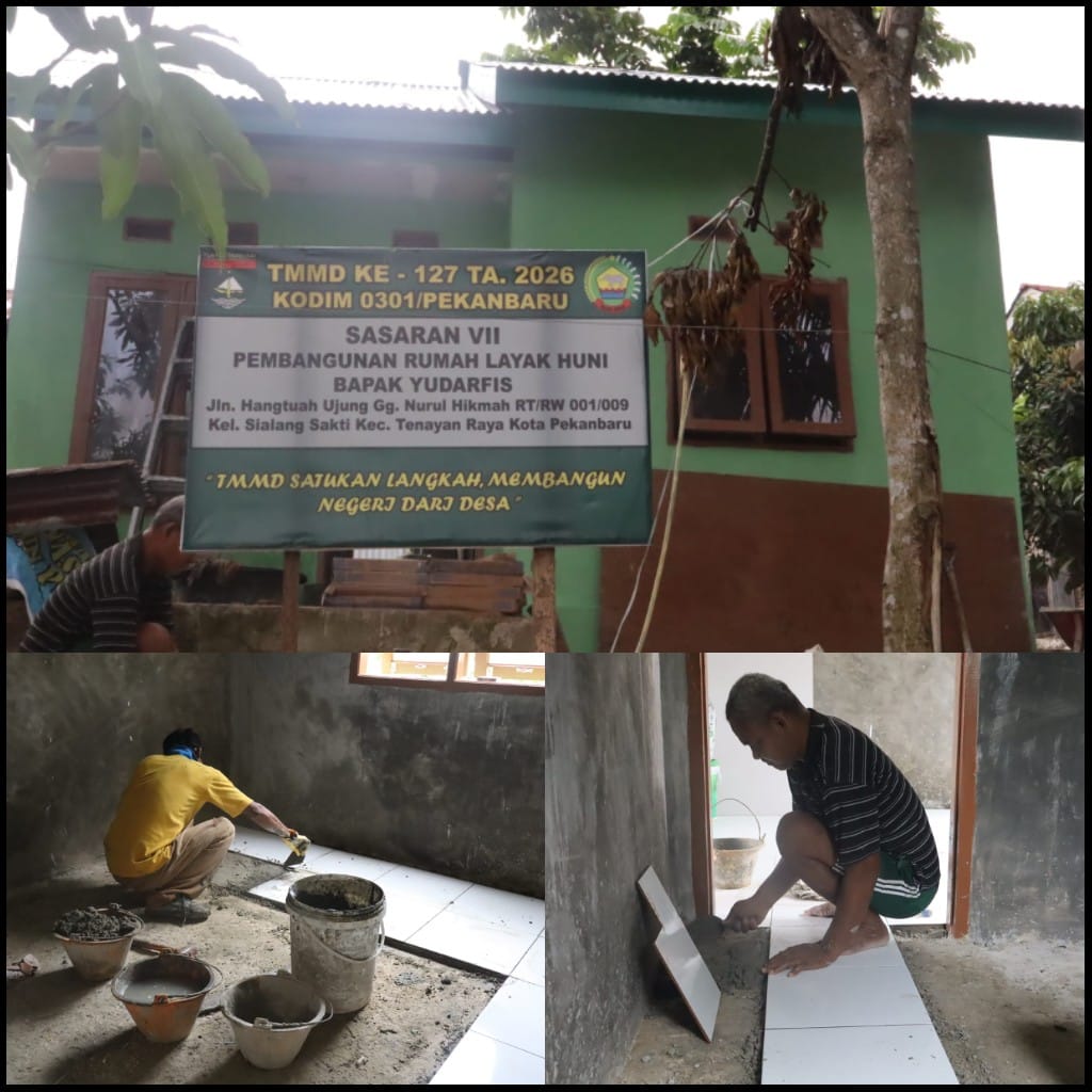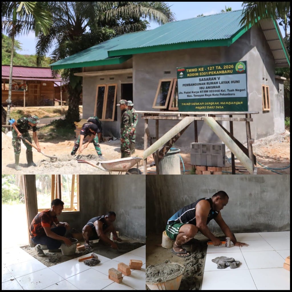 Satgas TMMD Ke-127 Kodim 0301/Pekanbaru Optimalkan Pengerjaan RTLH Saudi Alfa Seri di Tenayan.