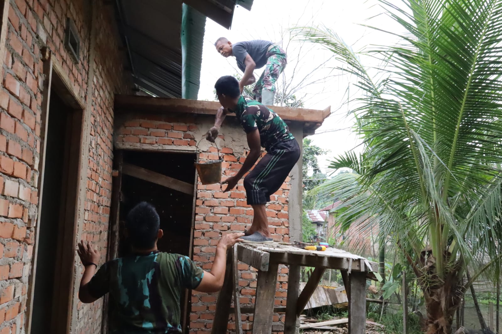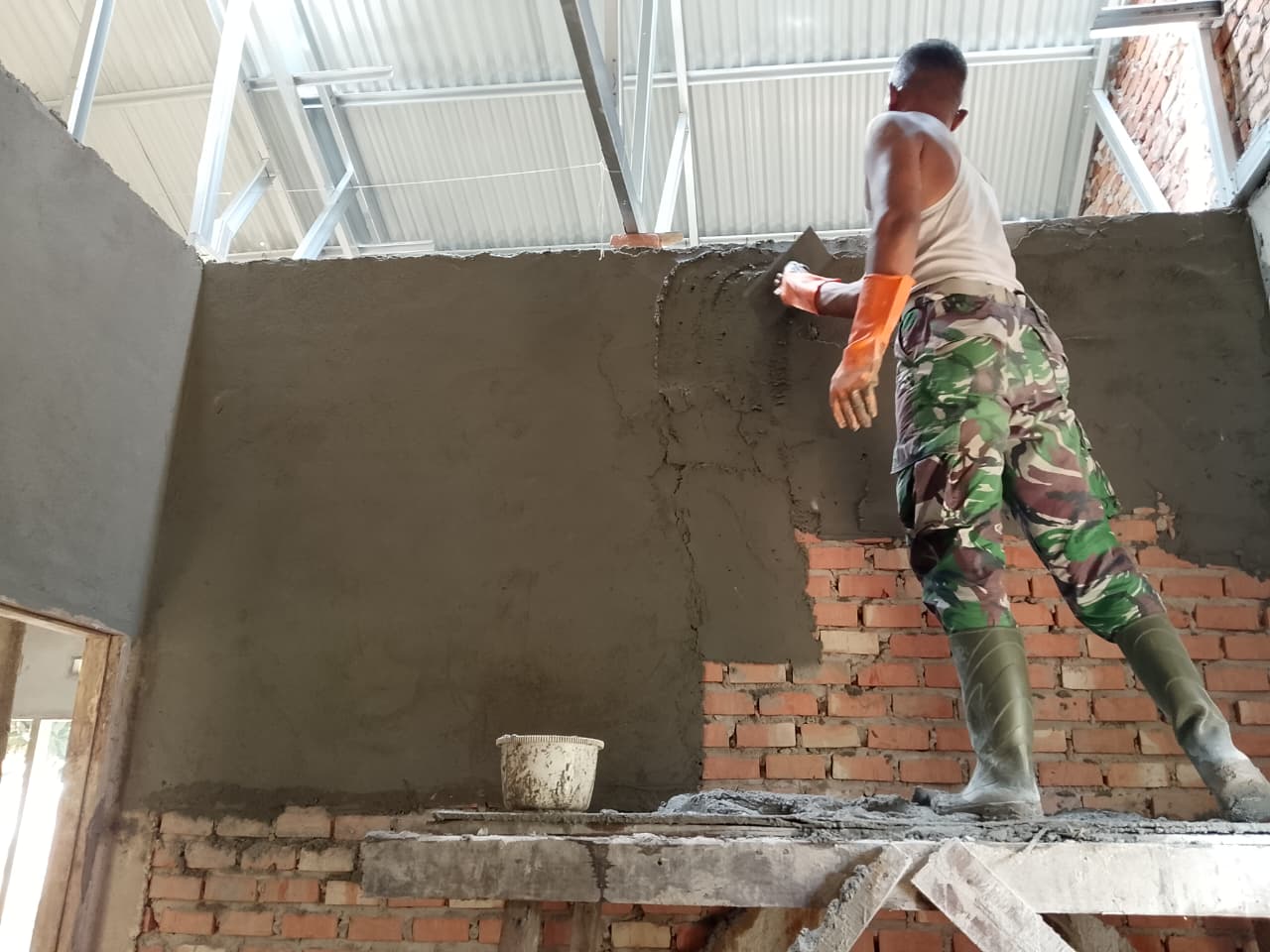 Balik Tetes Keringat, Plester Dinding Dalam Rumah Milik Sarianis Terus Dikerjakan Satgas.