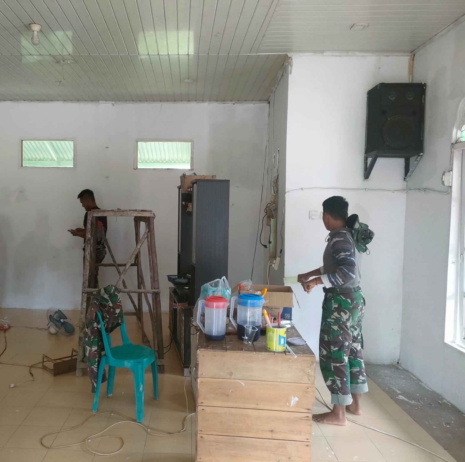 Satgas TMMD Percantik Dinding Dalam Mushola Al-Amin dengan Balutan Warna.