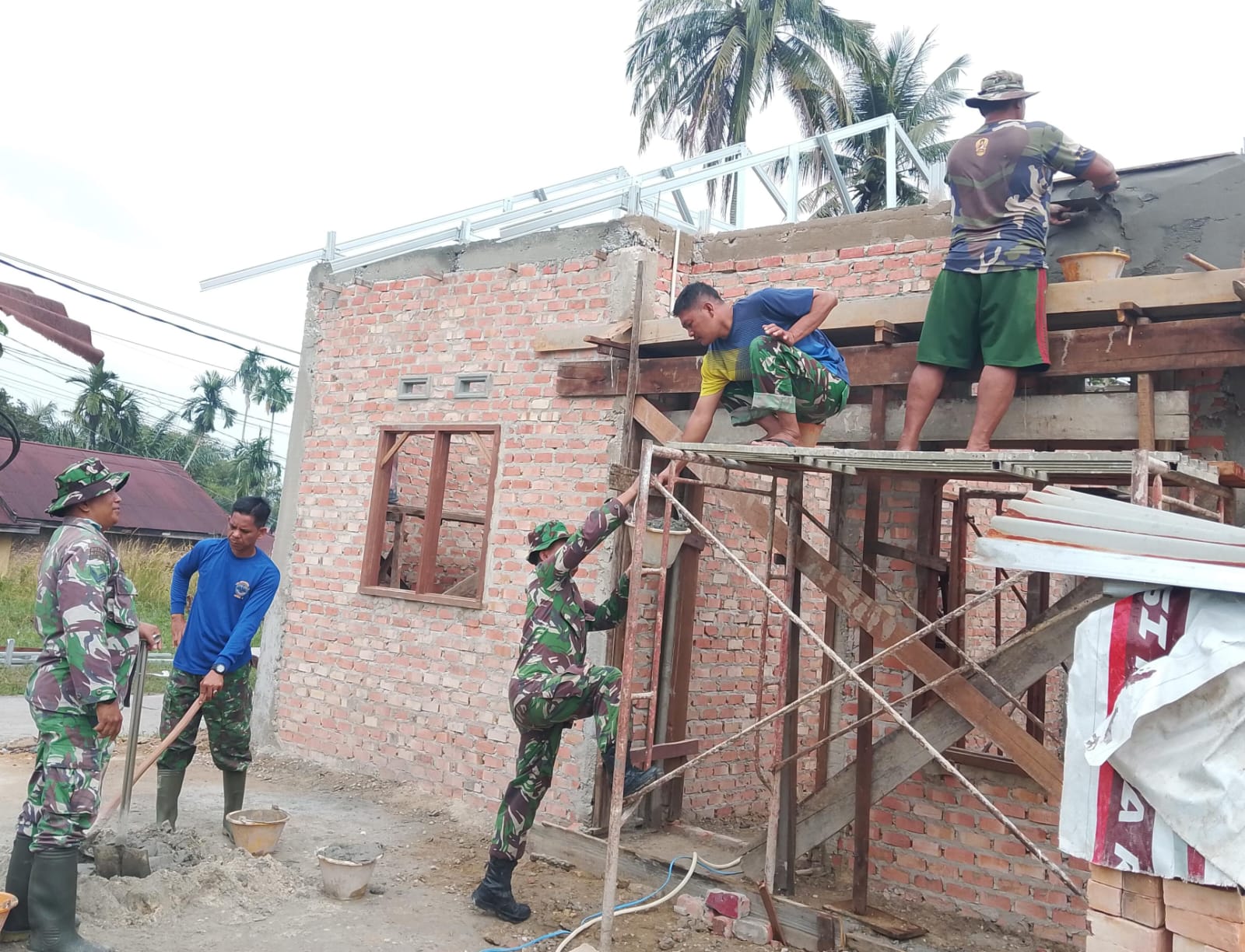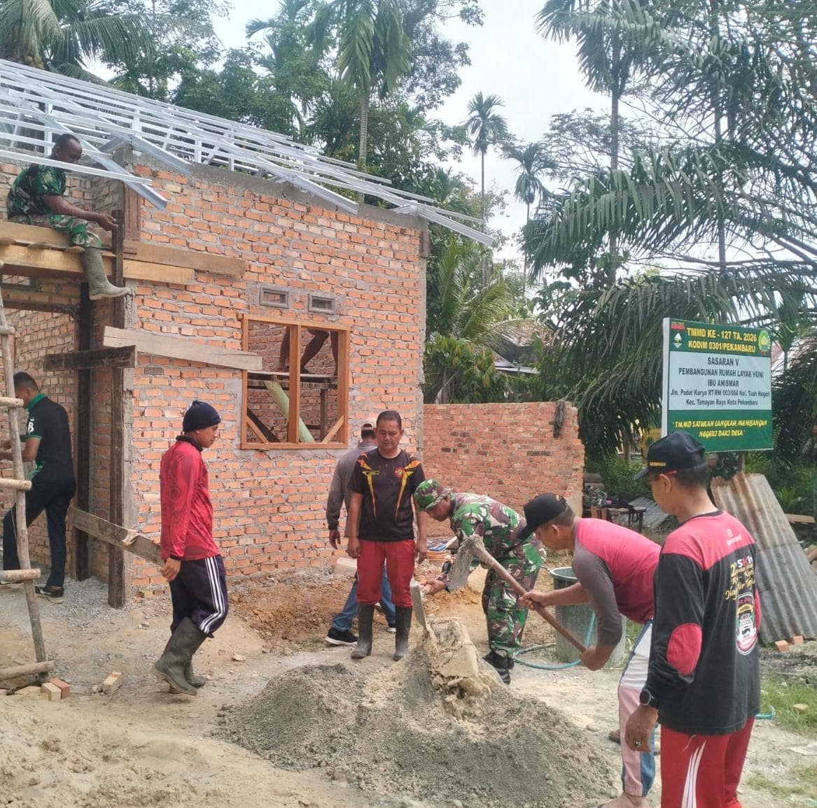 Pemasangan Mal Dak Teras RTLH Warga Tenayan Raya, Bukti Nyata Kepedulian Satgas.