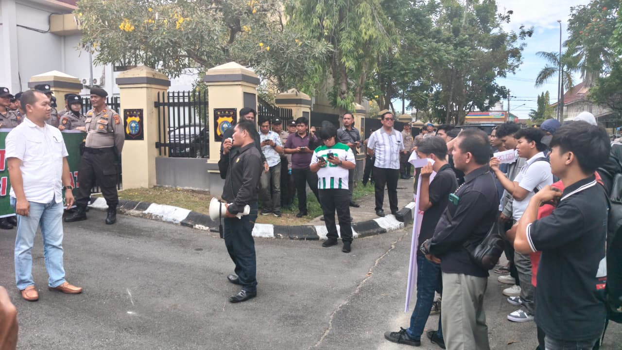 Selanjutnya, perwakilan dari Pamenwas Polda Riau, AKBP Boy Azhar menyampaikan apresiasi atas penyampaian aspirasi yang dilakukan secara tertib.