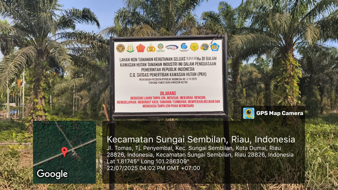 Satgas Penertiban Kawasan Hutan (PKH) memasang plang penertiban di area kebun kelapa sawit seluas ±9.841 hektare yang berada dalam kawasan Hutan Tanaman.