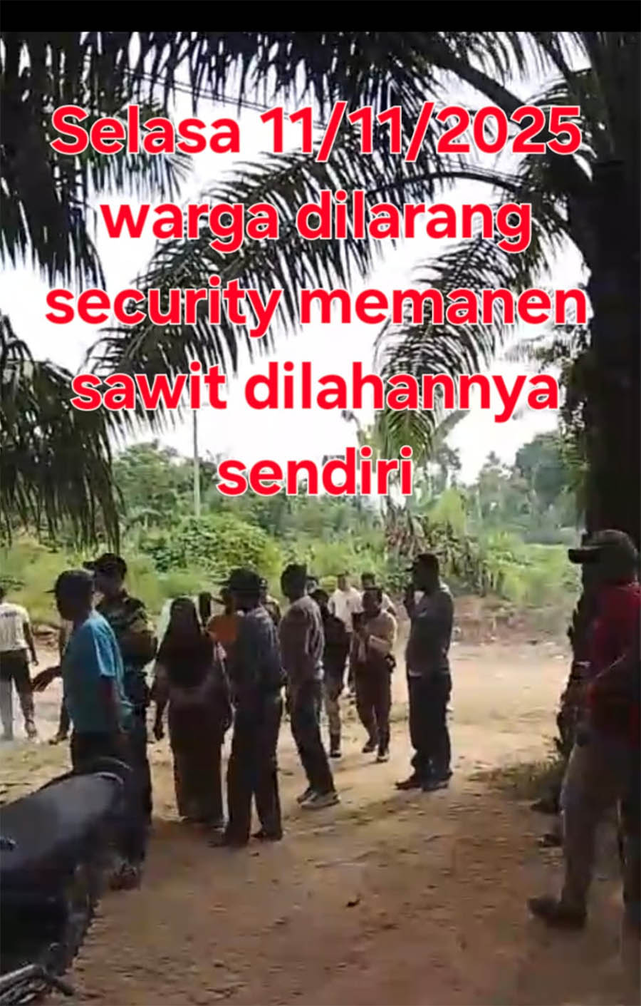 “Kami punya sertifikat hak milik yang diserahkan langsung oleh Presiden Jokowi. Tapi kami tidak boleh memanen buah sawit di kebun sendiri. Security di bawah perintah Kades melarang kami masuk,” ujar seorang warga dengan nada kesal.