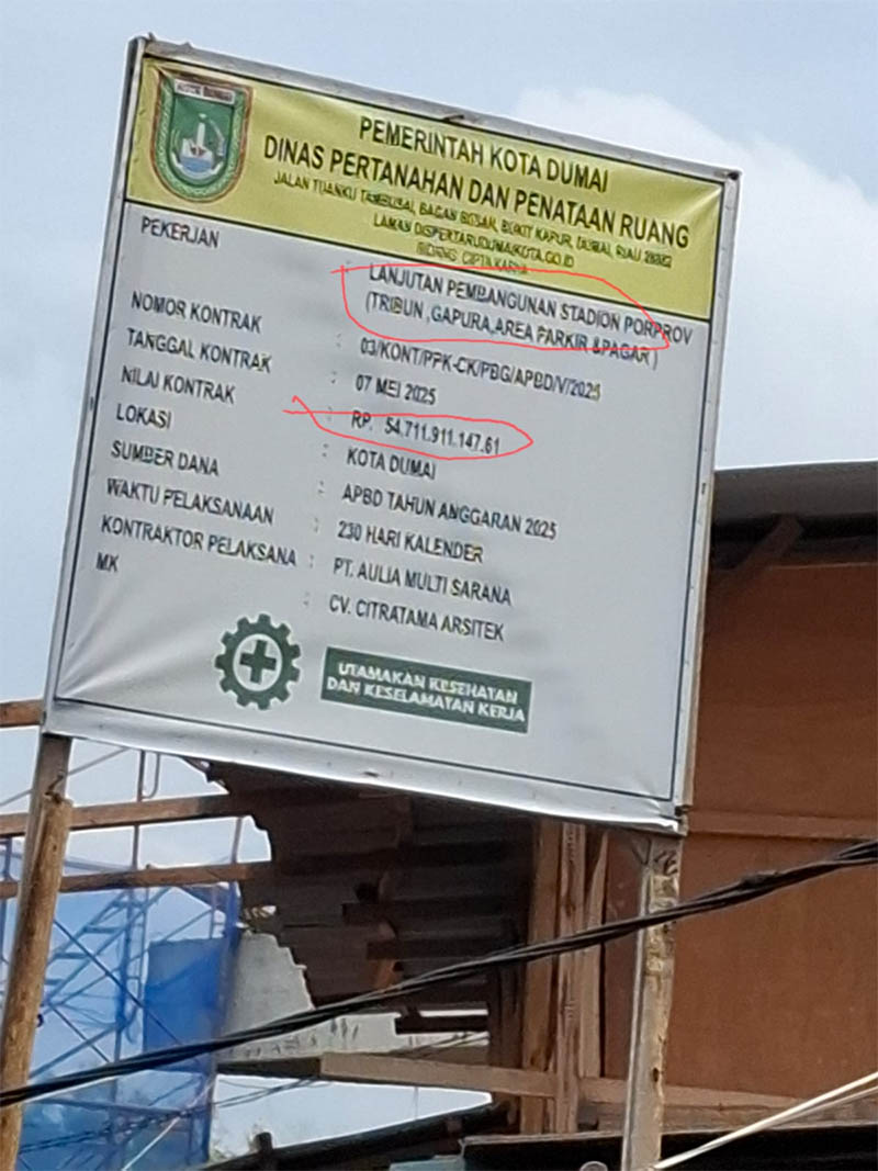 DUMAI — Dutapekerjaindonesia.com,--| Proyek pembangunan Stadion dan Gedung Olahraga (GOR) Kota Dumai yang disebut sebagai salah satu program strategis Pemerintah Kota Dumai kini mulai diselimuti dugaan praktik korupsi terselubung. Di balik narasi peningkatan sarana olahraga dan dukungan terhadap kegiatan kepemudaan, muncul indikasi kuat adanya rekayasa dalam proses pengadaan barang dan jasa pemerintah (PBJ), terutama melalui mekanisme lelang terselubung (covert tender).