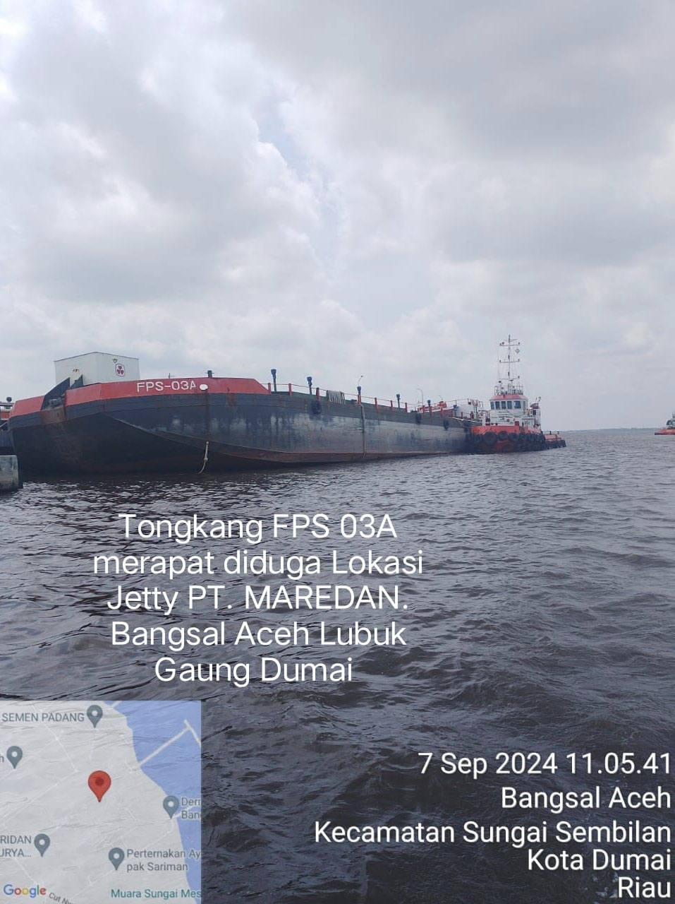Dumai, dutapekerjaindonesia.com. PT. Maredan Bangsal Aceh Sungai Sembilan perusahaan industry yang bergerak dibidang pengolah minyak mentah sawit CPO. dari penelusuran Tim media ini Sabtu, 7 September 2024 tongkang merek FPS – 03A, serta tuk boat FPS-03A Tanjung Perak sedang merapat dilokasi Jetty PT. Maredan diduga kuat akan melakukan loading-unloading, CPO, dikabarkan tidak mempersiapkan oil boom yang merupakan keharusan sebagaimana dimaksud dalam Pasal 10 ayat (1) Permenhub 58 Tahun 2013 Tentang Penanggulangan Pencemaran di Perairan dan Pelabuhan.