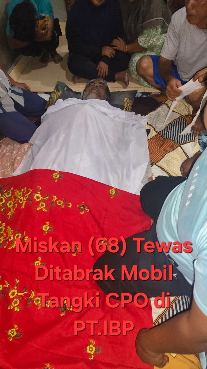 Dumai. Mimbarnegeri.com. Peristiwa Kecelakaan Kerja (KK) terjadi pukul 21.00 wib. Jumat malam (08/08/2025) peristiwa Kecelakaan tersebut mengakibatkan tewasnya salah seorang pekerja bongkar muat, diinformasikan korban Kecelakan bernama Miskan (67) warga Lubuk Gaung buruh bongkar muat salah satu Koperasi mitranya PT.IBP. Tewasnya Miskan akibat ditabrak mobil tangki CPO BM – 9556 JO dilokasi kerja PT. Inti Benua Perkasa (IBP) Lubuk Gaung.