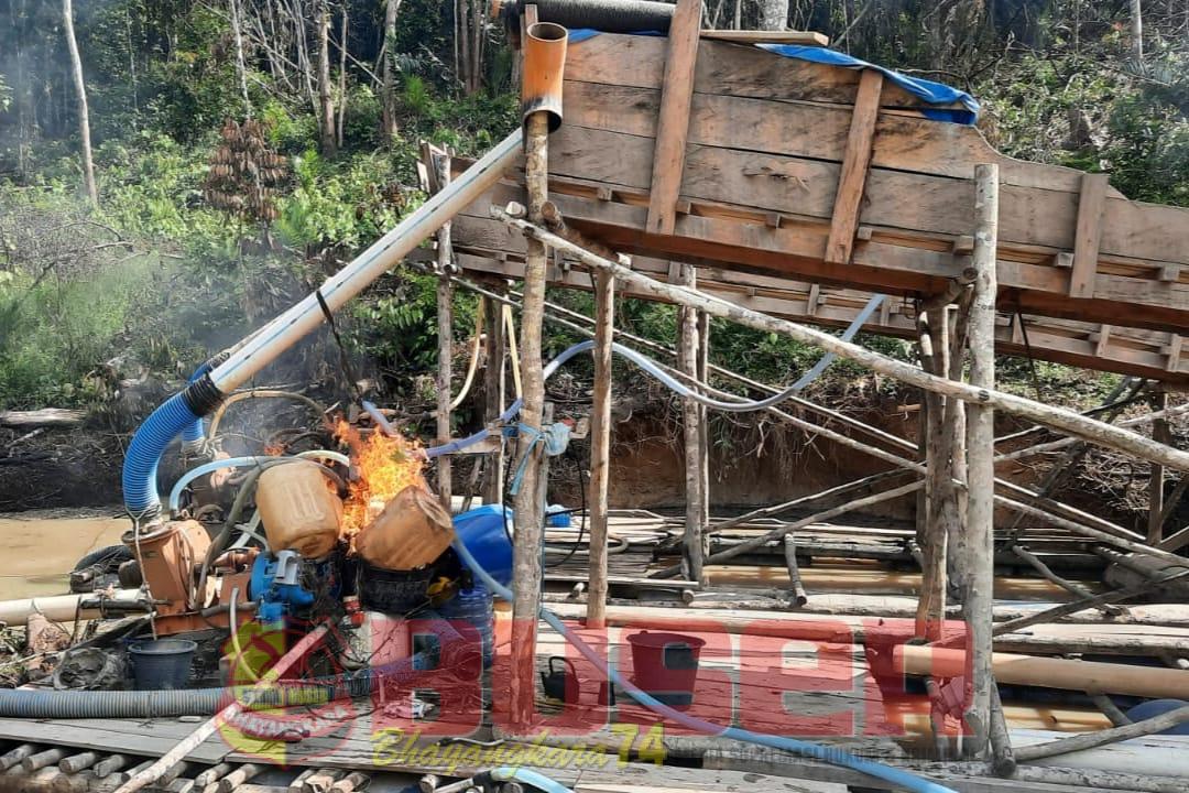 Dalam operasi tersebut, petugas berhasil mengamankan delapan rakit PETI beserta peralatan pendukung. Seluruhnya langsung dimusnahkan di lokasi sebagai bentuk komitmen penegakan hukum.