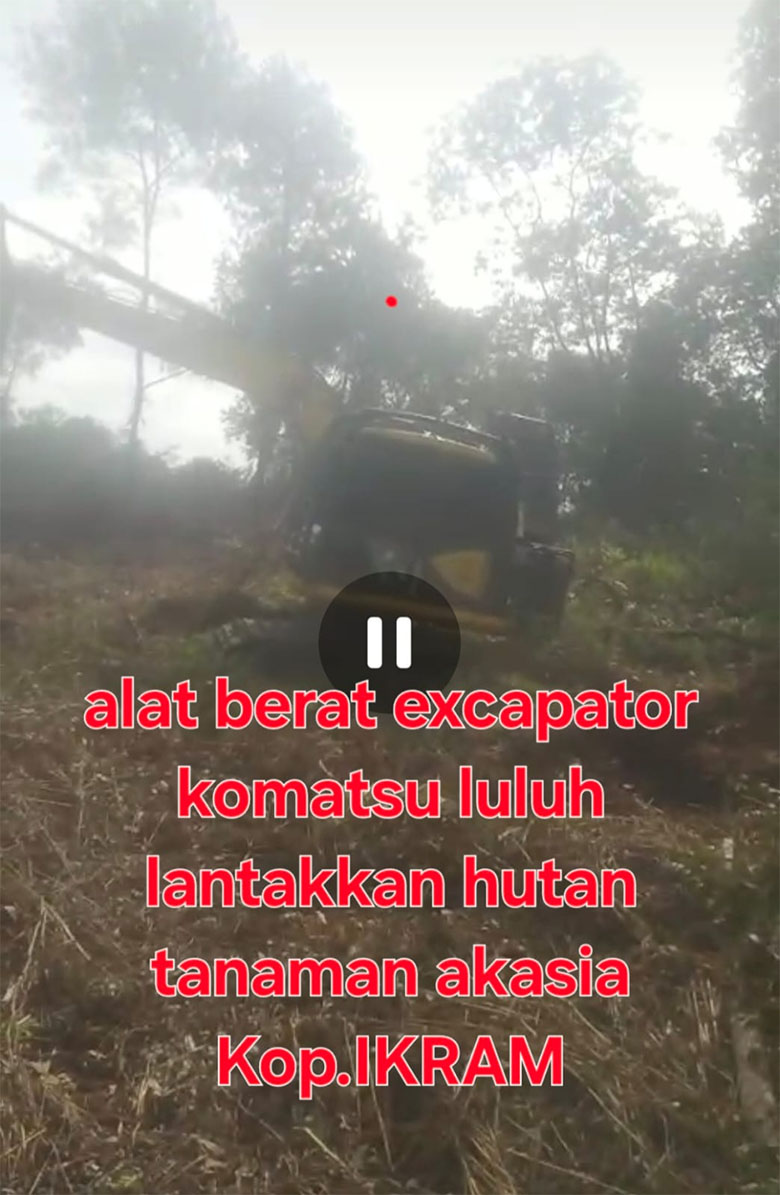 Investigasi di lapangan mengungkap adanya dua unit ekskavator yang membuka lahan di kawasan HKm Kop. IKRAM. Informasi yang dihimpun menyebut alat berat itu milik warga Dumai yang dikontrak seorang bernama Gultom.